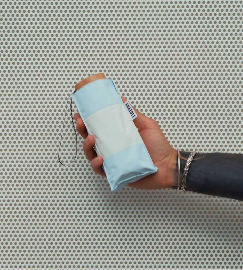 Experience the perfect blend of style and functionality with the UPF 50+ Sun & Rain Micro Umbrella in a stunning Pearl Blue Stripe design. Engineered by the esteemed Anatole brand, this umbrella is not only a chic accessory but also a reliable companion for all weather conditions.